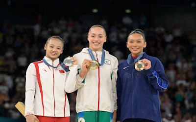 La brasileña Rebeca Andrade ganó en la competencia de suelo, arrebatándole el Oro a la archifavorita Simone Biles. Felicitaciones para Rebeca Andrade.
